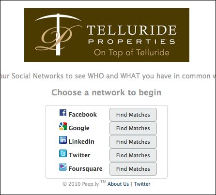 Colorado start-up Peep.ly is still in private beta, but you can see its social surfing option in action at Telluride Properties (click the agent match link). Imagine what a powerful tool this will be for someone shopping for an agent. With the click of a button they can scan their own networks and evaluate which of the agents they may already have a connection with. This will dramatically impact referral and lead generation. Even the business with only one employee could easily offer this kind of functionality so that when someone refers them a potential prospect could visit the website and see who know who.