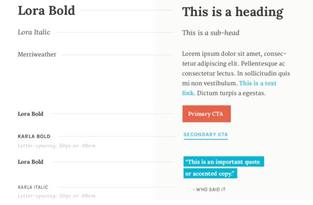 Things like the font style, size, weight, and spacing all convey information to your viewers. A bold, serif font that takes up ample space on the page may convey authority and strength, while a thin, delicate script font might signal a homey, warm quality.